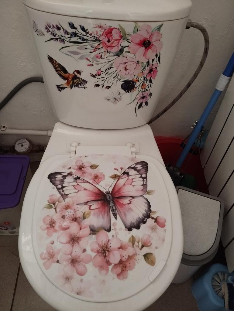 Looks good on the toilet lid. Had to remove it several times, didn't stick it on well, wrinkles appeared. But nevertheless, the adhesive stuck the application on perfectly.