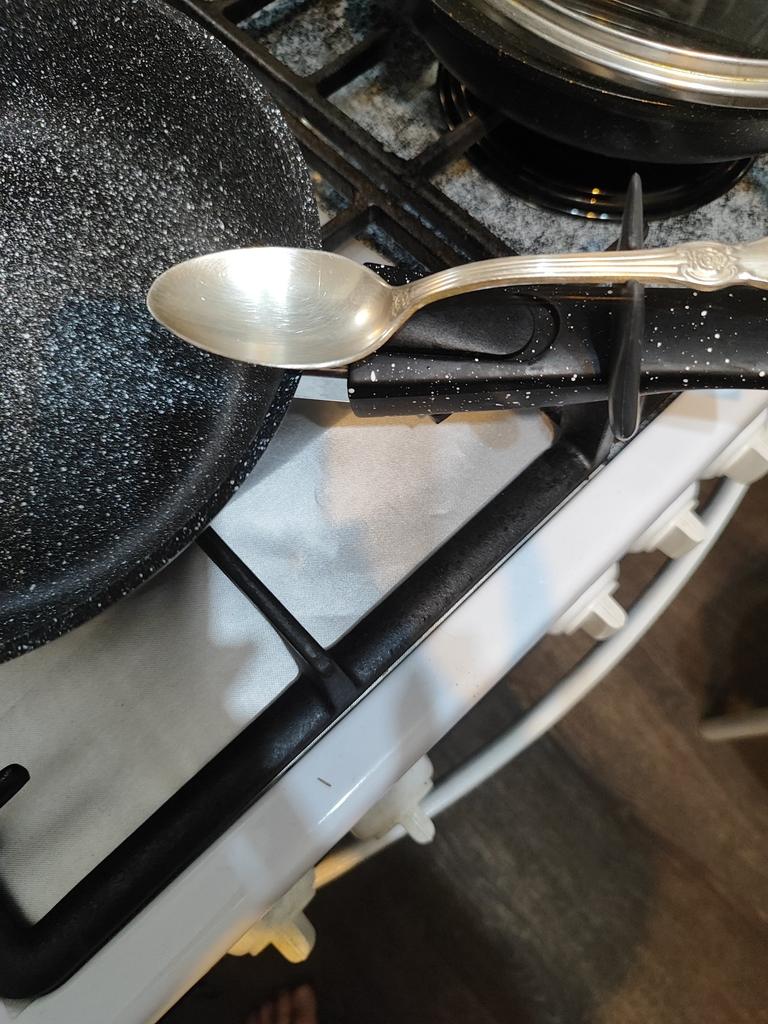 This so-called "rack", or rather spatula stand, only fits frying pans with thin handles. It was not possible to put this part on a standard handle of a non-stick frying pan - at the very first attempt, the part simply broke into two pieces and was thrown away due to the impossibility of use.