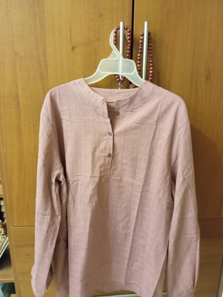 I received the blouse, xxxxl fit size 52-54. The blouse is cotton, elongated for trousers.