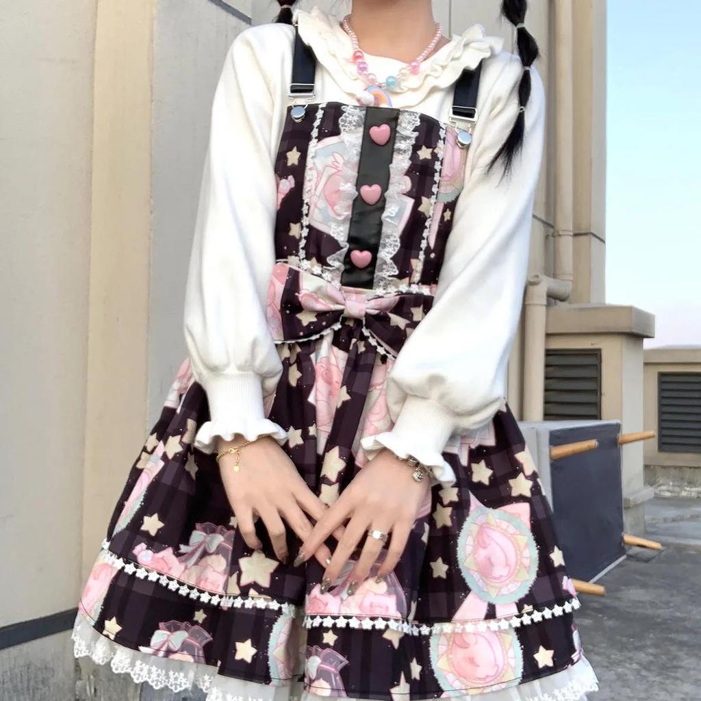 Kawaii Suspender Dress Harajuku Japanese Pastel Goth Print Dress Candy Print Pig Print Cute Lolita Dress Summer Dress DDLG Stars Tumblr Gift