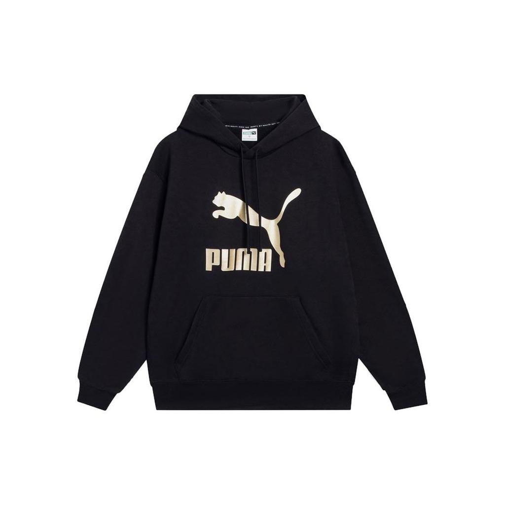 Puma Logo Print Long Sleeve Hooded Sweatshirt Men Tops Black 537678-01