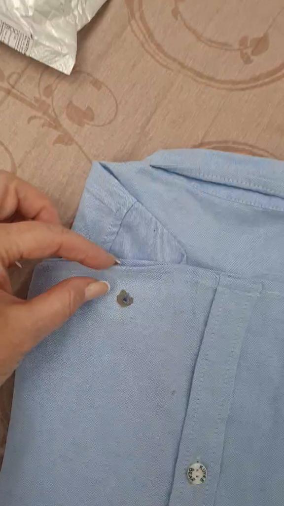 A hole burned into the shirt. It's a shame.