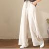 Women Spring Summer Cotton Linen Pants Casual Elastic Waist Wide Leg Trousers Fashion Loose Long Pants