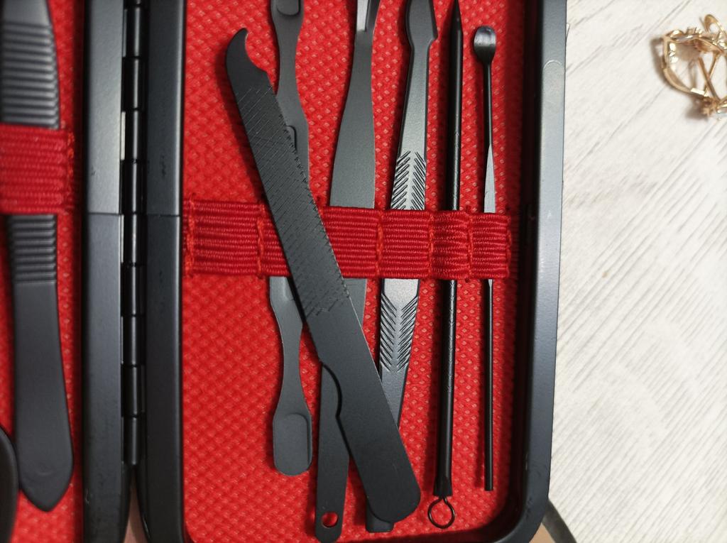 The quality of the case inside is awful. All the tools need sharpening, otherwise it's impossible to use them. I bought it as a gift for 4 UAH, so it's not a big loss, but for the full price it's useless