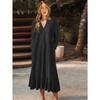 Spring and Autumn Women's Dress Plus Size Solid Colour V-Neck Tie Long Sleeve A-Line Long Dresses
