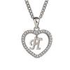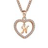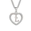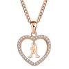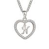 The necklace pendant features hollow heart shape, with a letter in the middle.