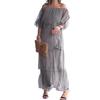 Women Dress Off Color Chiffon Ruffle Scattered Cake Hem Shoulder Multi-layer Pleated Solid Half Sleeves