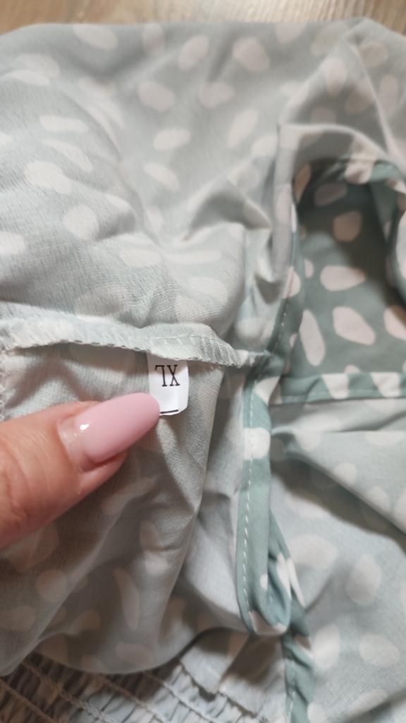 Beautiful dress. Size XL fit my 48 year old. Fabric, polyester, good quality, light, shines a little in the sun. The color is light pink. The village is perfect. At a height of 162, the length is at the ankle level.
