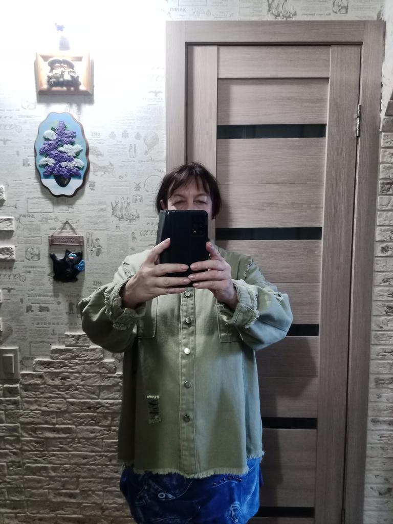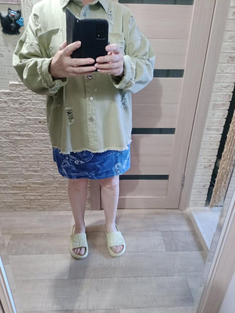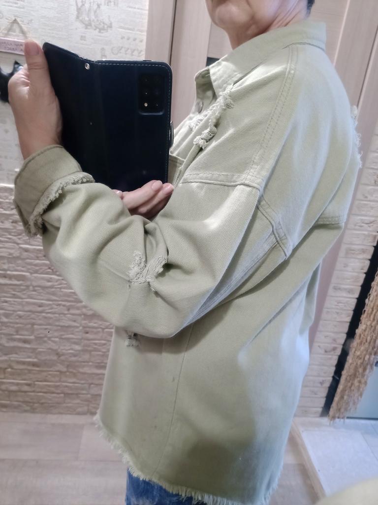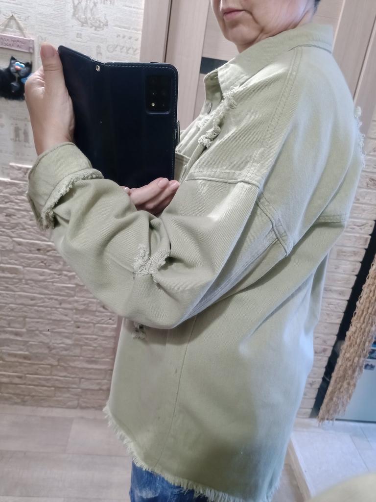 Size M fits 48. Made to match jeans. What I didn't like were these torn holes all over the jacket-shirt. There are a lot of them, which clearly spoil the look. More youthful style. If I had seen it in a city store, I wouldn't have bought it for 1.5 thousand!