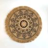 Boho Round Placemat 15 Inch Farmhouse Woven Jute Fringe TableMats with Pompom Tassel Place Mat for Dining Room INS Table Decors