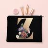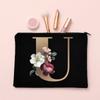 Alphabet Floral Makeup Bag Bridesmaid Maid of Honor Holiday Wedding Bachelorette Party Gift Canvas Cosmetic Zipper Storage Pouch
