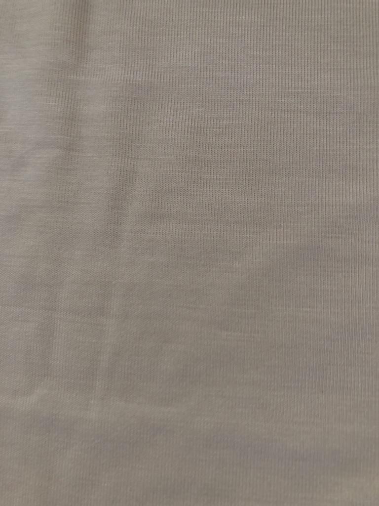 Slightly silky, fits my measurements 100-80-100 perfectly. Just a regular tank top