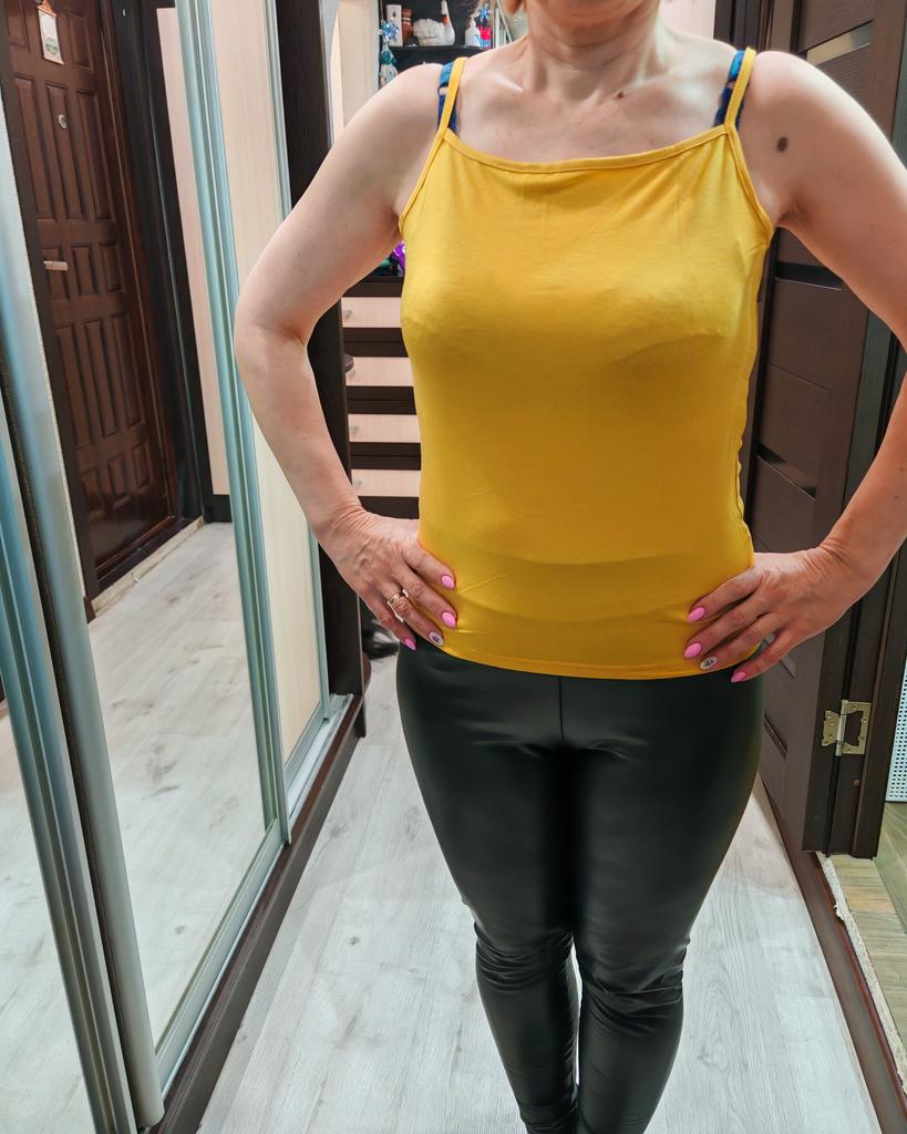 Thin T-shirt with thin straps, high quality, silky, nice color, pleasant, the size fits, I really like it 🥰, thank you 😉 I recommend it!!! 🌷🤙🌷🤙🌷🤙🌷🌷🌷🌷
