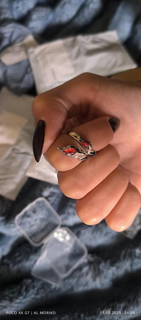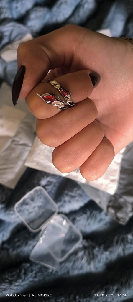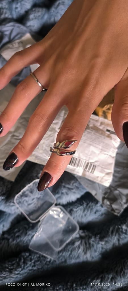 Gothic style ring With proper storage, it does not oxidize, so it looks like new to me, although I ordered it two months ago. I bought it for a photo shoot, so it's a bit not my style ;) But, in my opinion, it looks cool. The ability to adjust, but the metal is quite strong, so I don't know how. But I didn't need to. It shimmers very well in the sun.