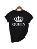 100% Cotton T Shirt KING QUEEN Letter Crown Printed Black White T-shirts Summer Casual Couple Lovers Tshirt Tops Clothes Unisex