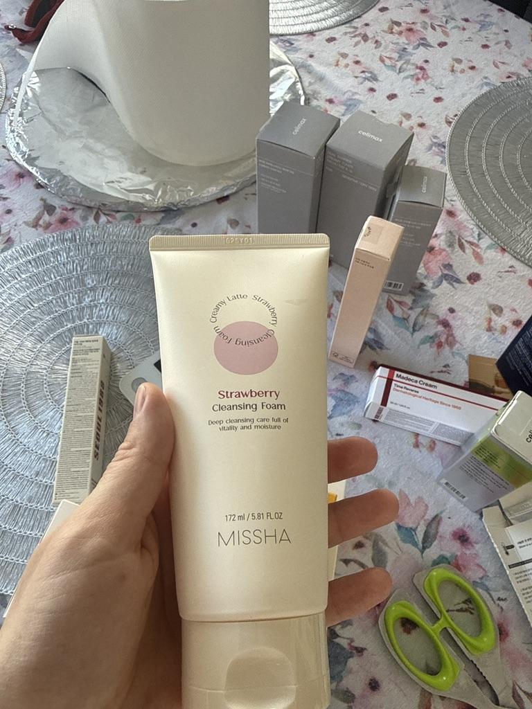 Purified water, glycerin, palmitic acid, myristic acid, stearic acid, potassium hydroxide, lauric acid, cocamidopropyl betaine, beach strawberry extract (0.333ppm), butylene glycol, milk protein extract (0.01 ppm), milk extract (0.1ppm), dipropylene glycol, sodium chloride, acrylate/C10-30 alkyl acrylate crosspolymer, cellulose gum, polyquaternium-7, arachidic acid, PEG-90M, sodium Benzoate, silica, BHT, disodium EDTA, phenoxyethanol, ethylhexylglycerin, fragrance