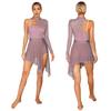 Women Lyrical Dance Dress One Shoulder Contemporary Ballet Costume Asymmetric Hem Leotard Dress