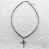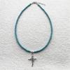Fashion 4mm Natural Stone Turquoises Chokers Necklaces For Women Charm Light Blue&White Pendant Necklace Prayer Cross Necklace