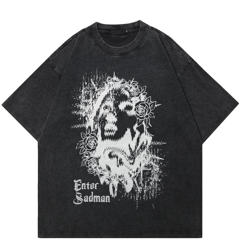 Streetwear Abstract Lion Graphic Unisex T-Shirt Cotton Washed Black Tshirt Unisex Tops Tees Summer Short Sleeves T Shirt