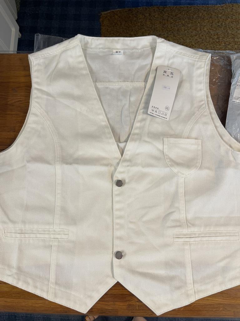 The vest is not at all like the picture, the jeans are like work clothes and there are threads sticking out on the stitching, in short, it’s a waste of money, I definitely won’t wear it.