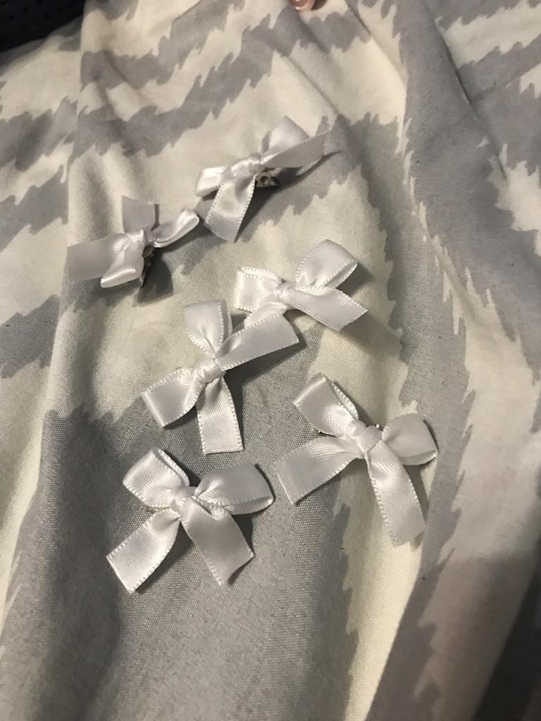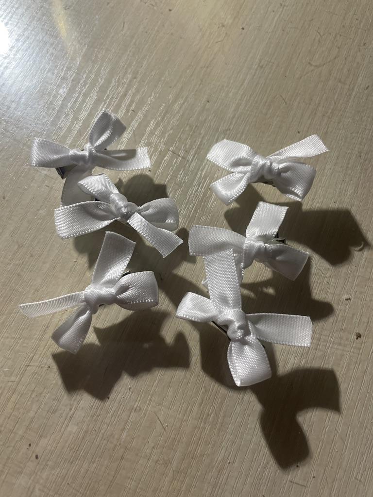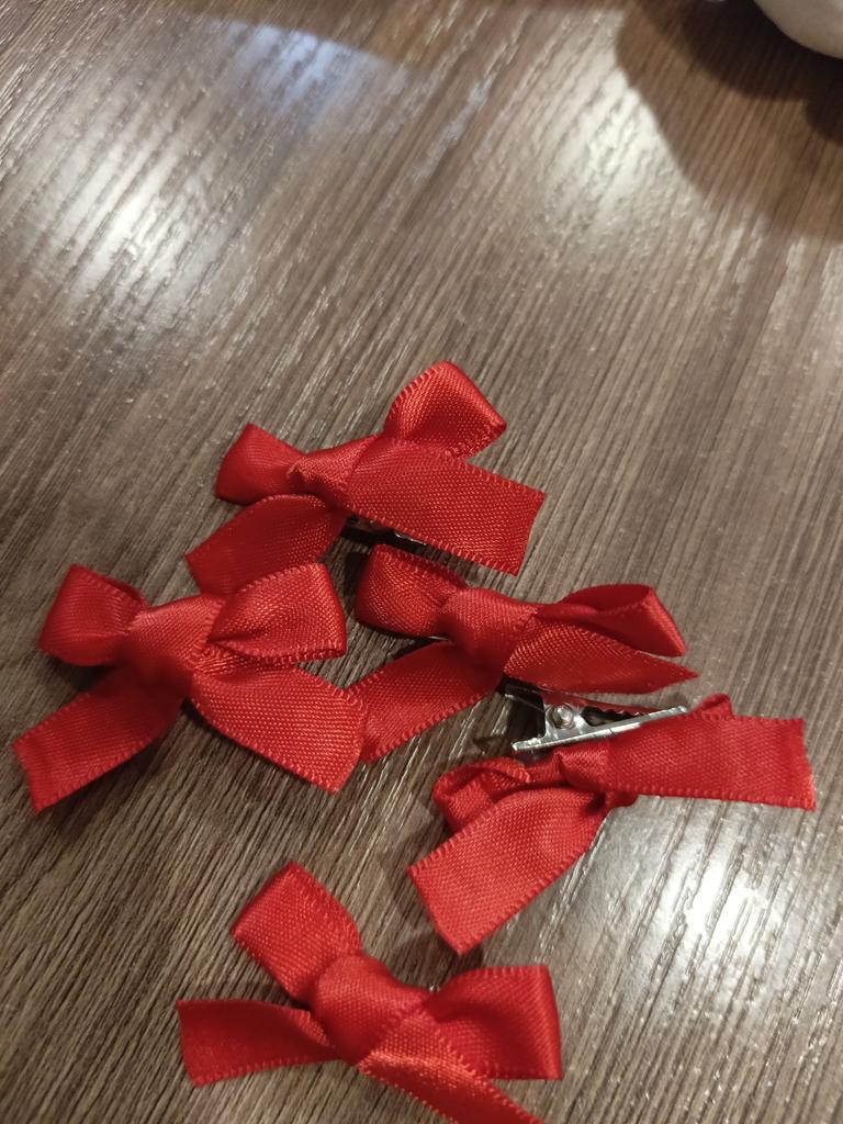 Small and cute bows 🎀 It's simple 🥰 The set includes 6 pieces, as stated. In the last photo there are 5, because I sowed one somewhere at home 🙂↕️ I hope to find… Tiny, look very gentle in hair. Nice shade, standard satin ribbon. Holds well, glued perfectly too. Doesn't seem to untie)