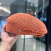 Women Fixed Pleated Paper Straw Beret Summer Milk Silk Knit Breathable Big Artist Fashion Newsboy Hat