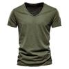 Summer Short Sleeve Cotton Tee Shirt Men V Neck Solid Sports T Shirts Men's Black White Tops