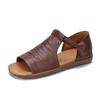Johnature Peep Toe Flat Sandals Retro Genuine Leather Comfortable Soft Sole Versatile Women's Shoes