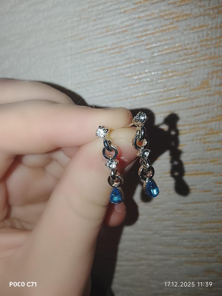 In the photo, when choosing the earrings, you can't see that the rhinestones are blue, so when they arrived, I was a little disappointed, one of them was glued crookedly...