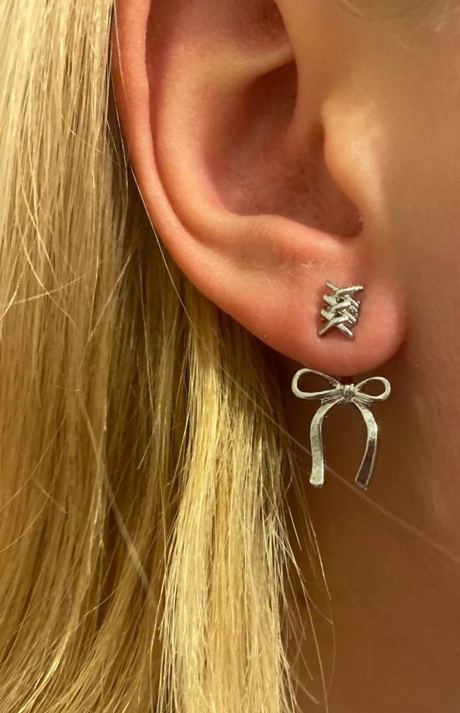 The earrings are very big, so I can't wear them with another one, because they interfere with each other. But they are very beautiful, all rhinestones are in place