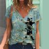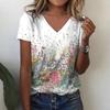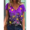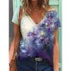Summer Loose Couples T Shirt Fashion Women V Neck Short Sleeve Tops Casual 3D Floral Print T Shirts