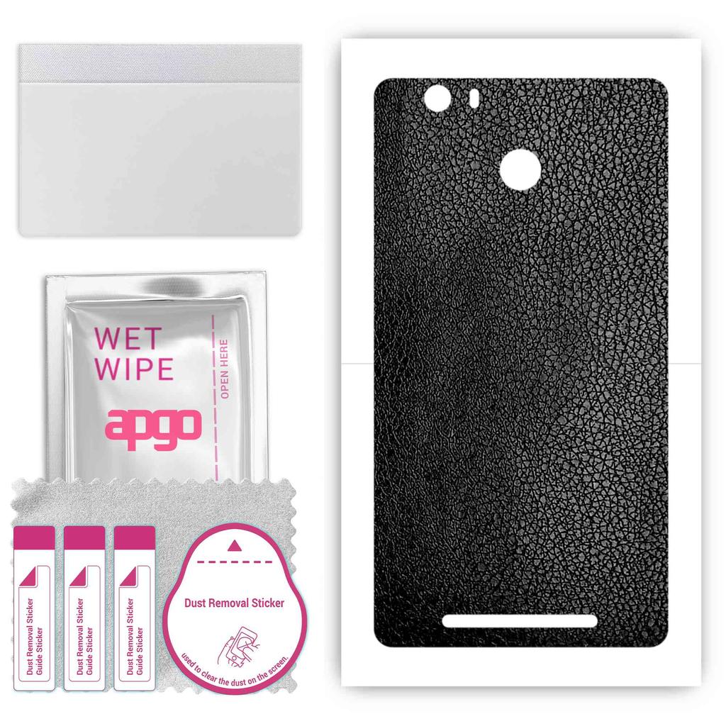 apgo Protective Skin Sticker for the Back Compatible with Kruger&Matz Flov 4 Plus, Wrap Film, Foil, Vinyl - Pattern Black Leather