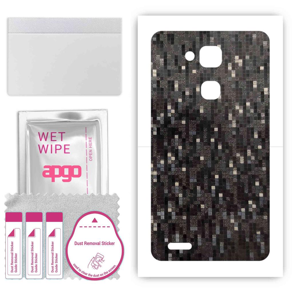 apgo Protective Skin Sticker for the Back Compatible with Huawei Mate 7, Wrap Film, Foil, Vinyl - Pattern Carbon Black Pixel
