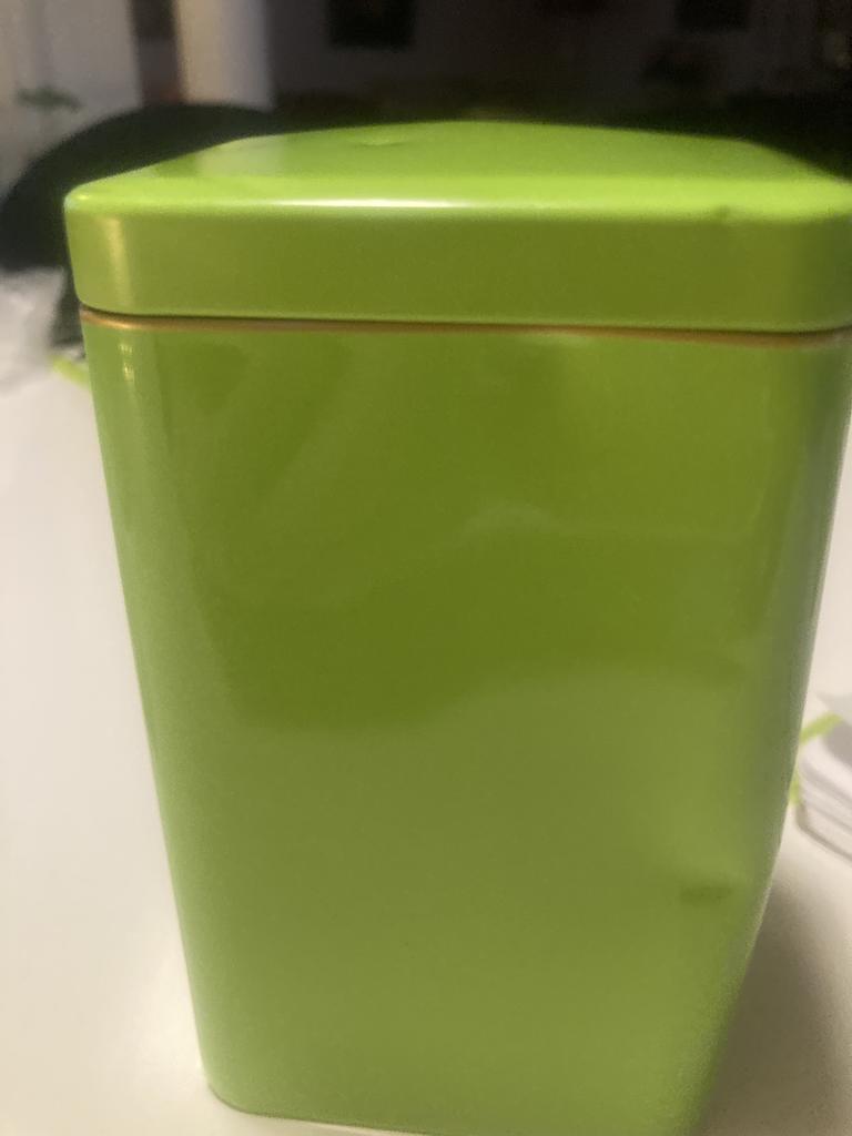 Other than a slight scratch and a small dent this is a beautiful, lightweight and practical gold tea caddy.