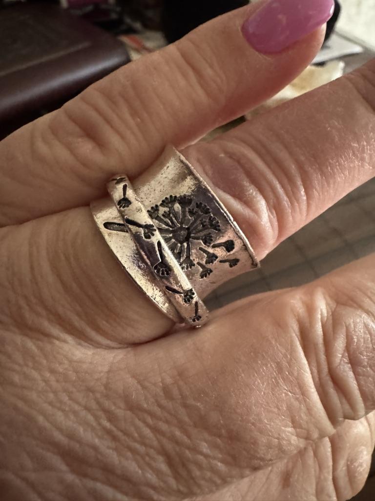 This ring has its own twist😊If someone, like me, wants to complete the set, this ring will not match, as the metals and processing are different despite the similarity of the designs. It fits me on the middle finger. Thank you!❤️Peace and goodness to all!🎉