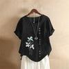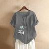 Women Cotton Linen Floral Boho Tops T Shirt Summer Short Sleeve Loose Blouse Tee Clothing