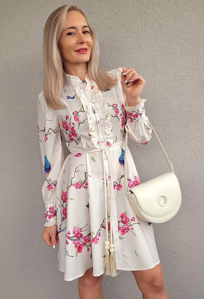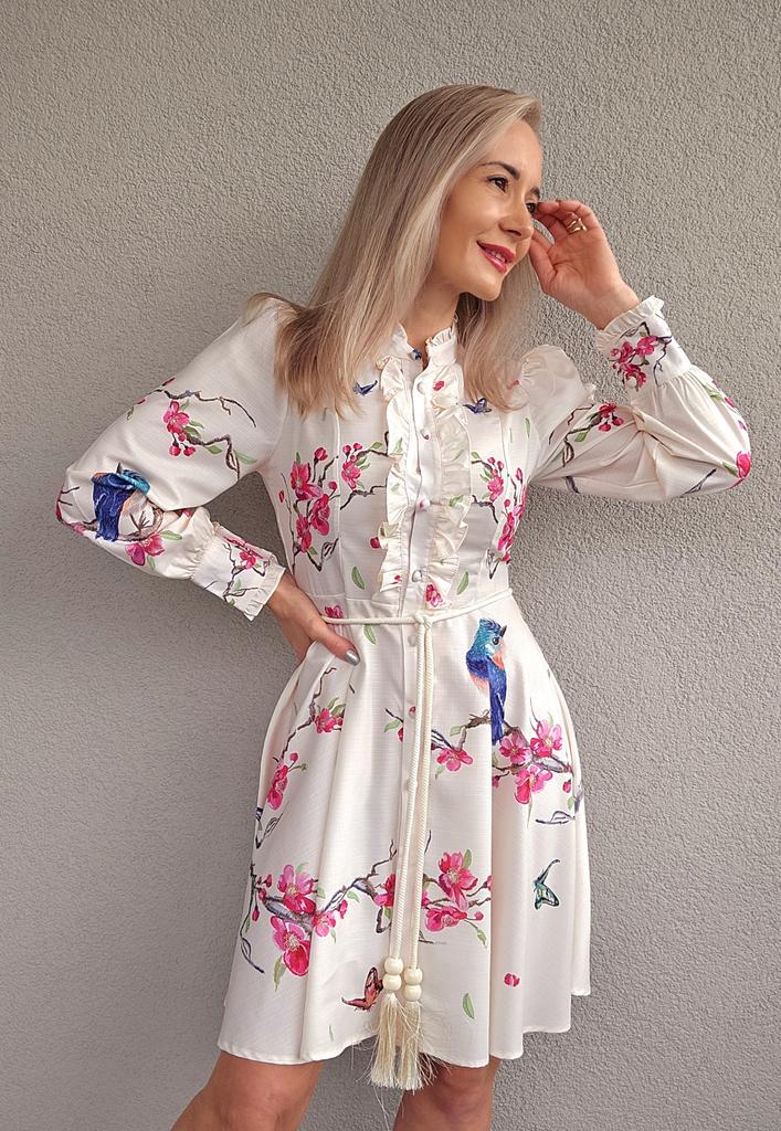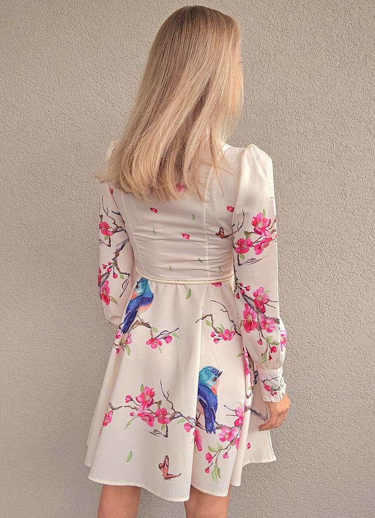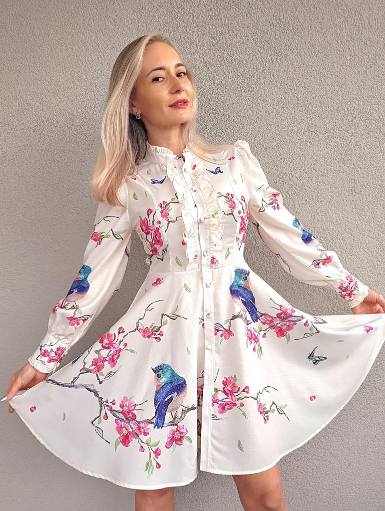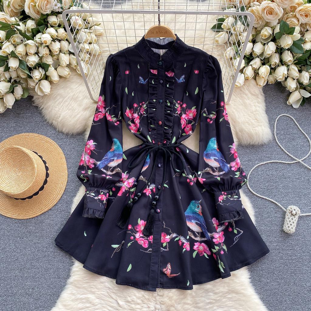 French Chic Retro Vestidos Female Long Sleeve Printed A-line Bodycon Dress Spring Lace-up Pleated Dresses Button Dropshipping