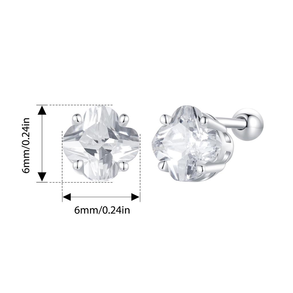 WOSTU 925 Sterling Silver Four-leaf Clover Stud Earrings with Zircon for Women Girl Fine Jewelry Party Daily Date Lucky Gift