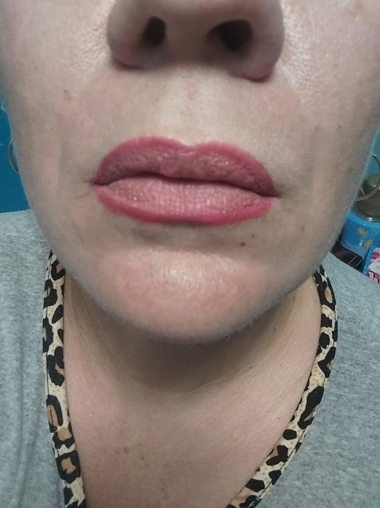 Terribly dark color. For lips, it's completely unsuitable. Only for eyes.