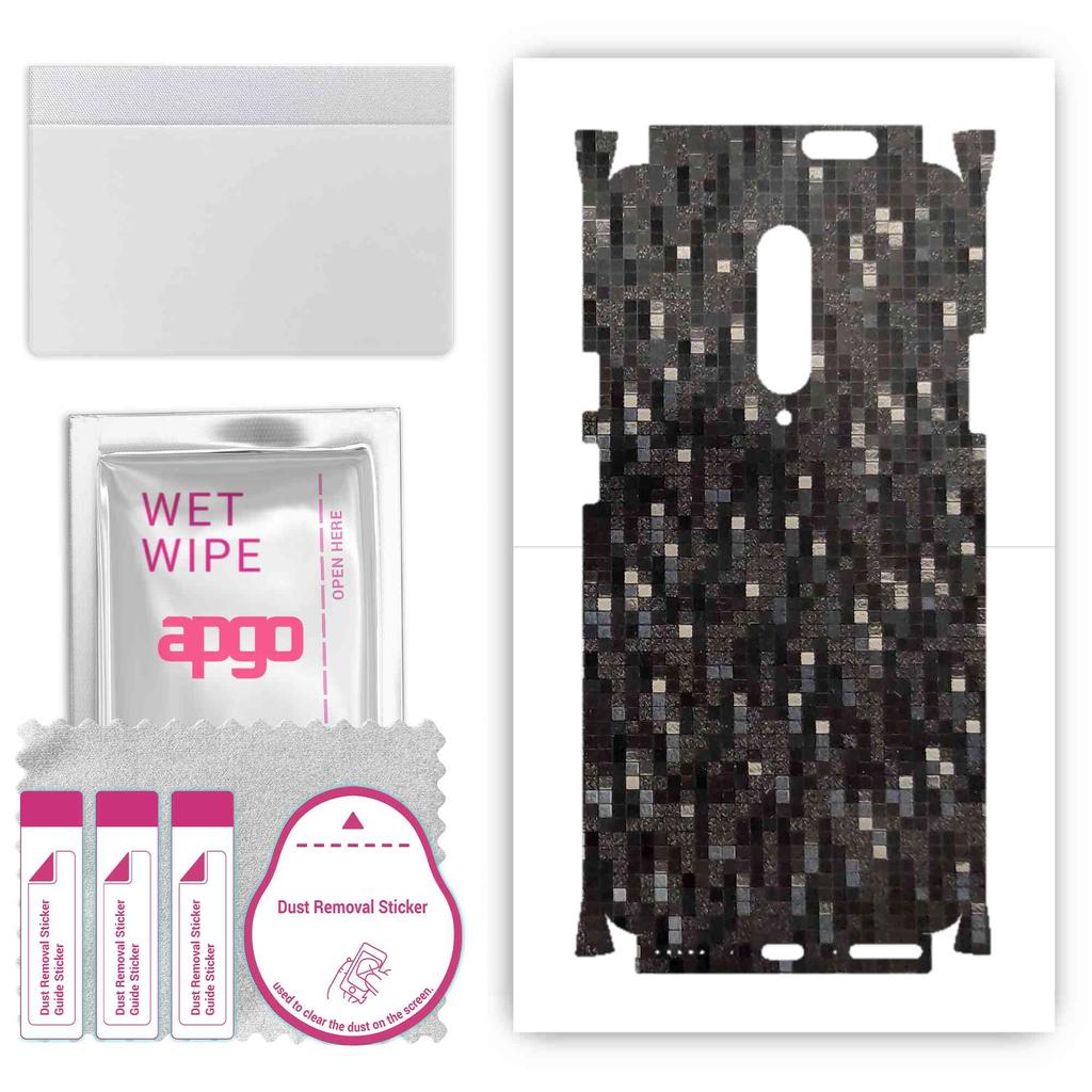 apgo Protective Skin Sticker for the Back+sides Compatible with OnePlus 7 Pro 5G, Full Wrap Film, Foil, Vinyl - Pattern Carbon Black Pixel