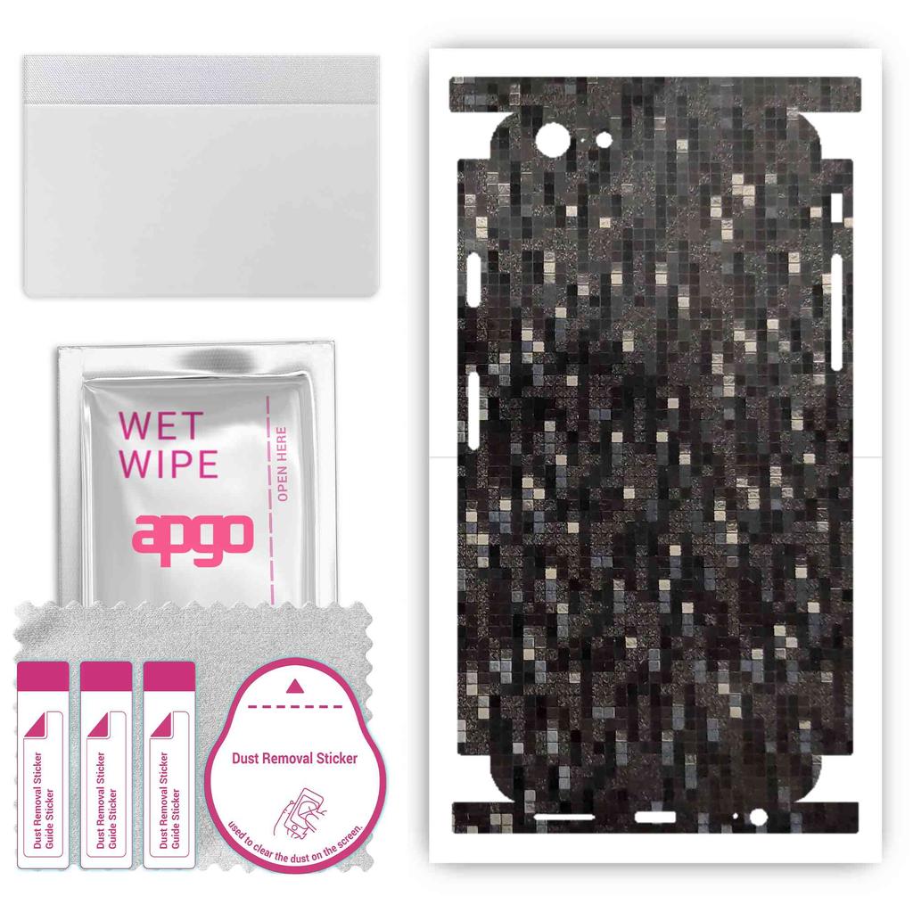 apgo Protective Skin Sticker for the Back+sides Compatible with Apple iPhone 6s, Full Wrap Film, Foil, Vinyl - Pattern Carbon Black Pixel
