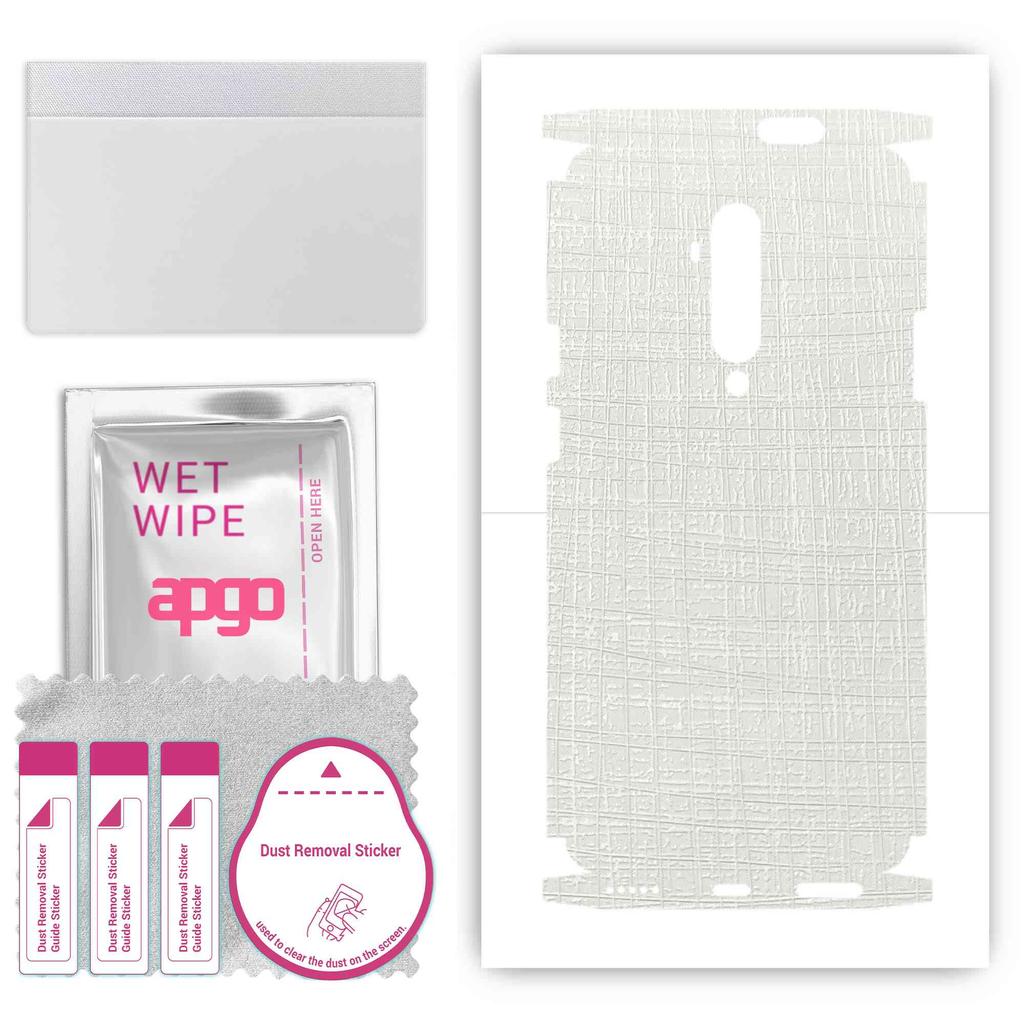 apgo Protective Skin Sticker for the Back+sides Compatible with OnePlus 7T Pro, Full Wrap Film, Foil, Vinyl - Pattern White Fabric