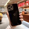 Luxury Square Plating Love Heart Phone Case For iPhone 13 12 Mini 11 Pro Max X XR XS Candy Bnmper On 7 8 Plus SE Soft Cover