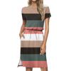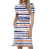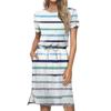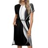 Women's Lashionable Loose Fitting Casual Printed Round Neck Short Sleeved Drawstring Pocket Dress