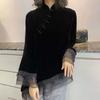 Popular Blouses Women Chinese Style Vintage Stand Collar Aesthetic Retro Patchwork Female Blusas Long Sleeve Temperament Chic