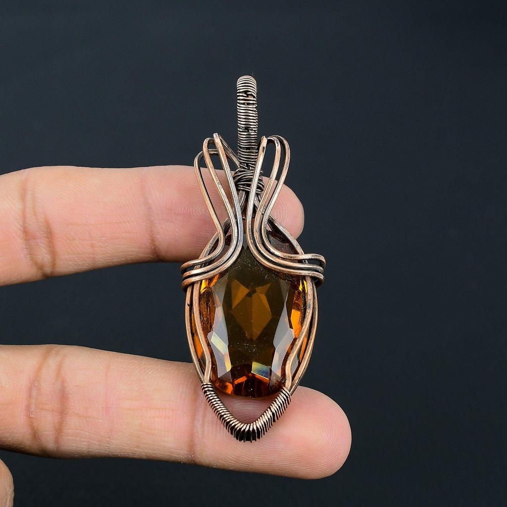 Honey Topaz Gemstone Handmade Pure Copper Wire Wrap Jewelry Pendant For Thanksgiving