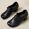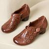 2024 Spring Summer New Genuine Leather Pumps Retro Hollow Round Toe Soft Sole Women's High Heels Shoes