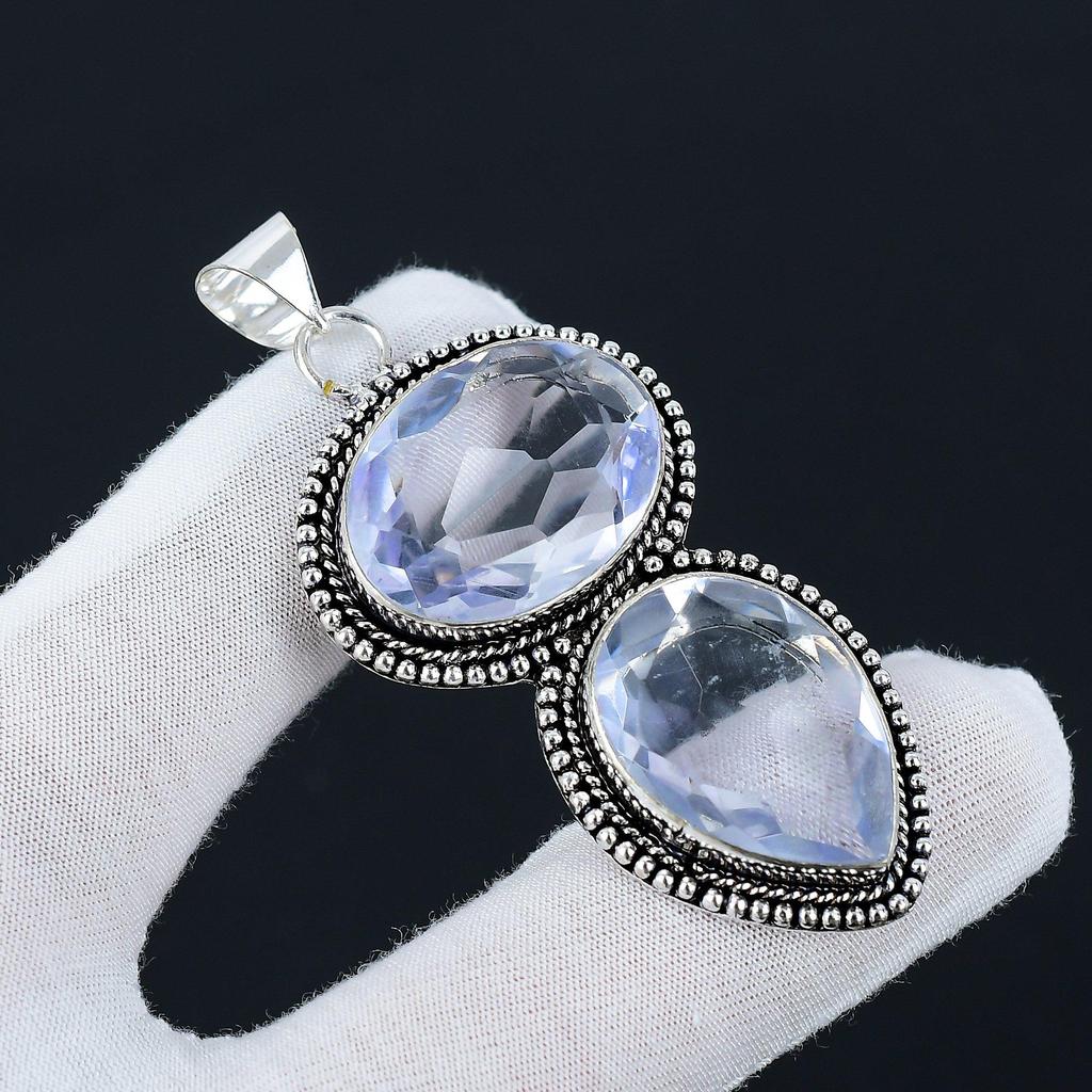 White Topaz Gemstone Handmade 925 Sterling Silver Jewelry Pendant, Handcrafted Jewelry, White Jewelry Pendant Necklace, Thanks Giving Gifts