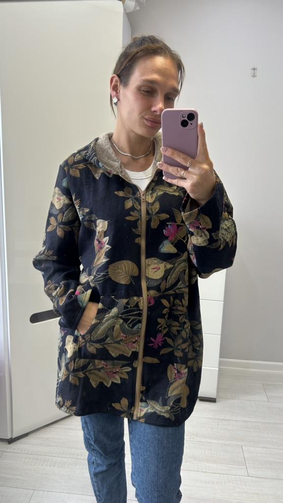 For 44-46 I took L. I wanted it bigger to wear a warm sweater underneath. In principle, you can wear something underneath, the sleeves are a bit long. But this is not a jacket, but a sweater.