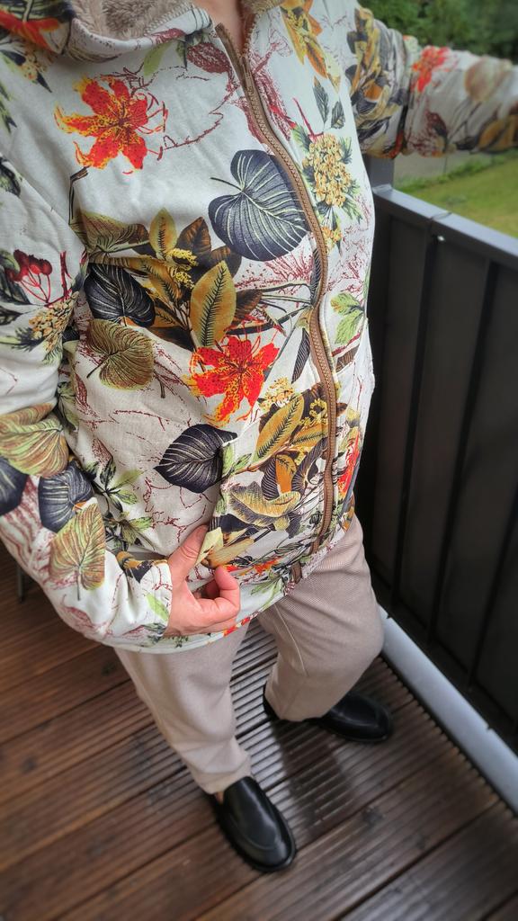 I’m happy, my 52 fits in quite freely, the sleeves are a little long, rolled up, doesn’t spoil the appearance at all, and yes, this is a summer light sweatshirt jacket, comfortable and cute...
